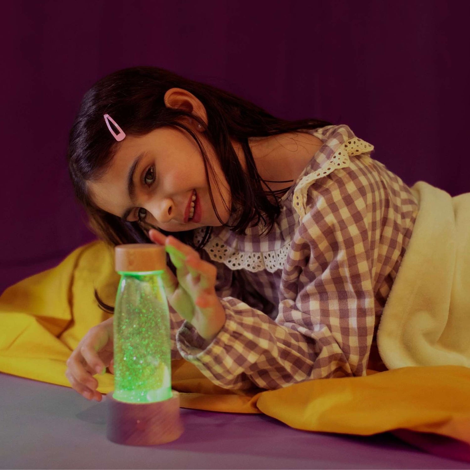 Elk flesje bevat een wonderlijke mix van kleur, geluid en beweging, geïnspireerd door de Montessori- en Pikler-visie.