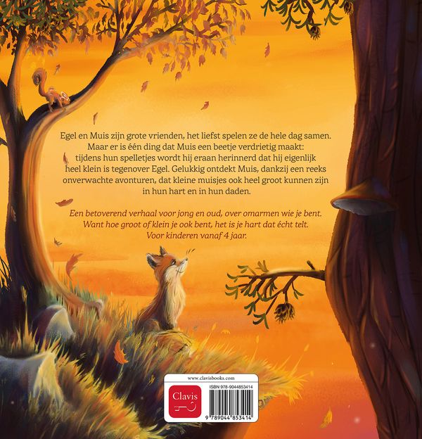 Egel en Muis zijn grote vrienden, het liefst spelen ze de hele dag samen. Maar er is één ding dat Muis een beetje verdrietig maakt: tijdens hun spelletjes wordt hij eraan herinnerd dat hij eigenlijk heel klein is tegenover Egel. Gelukkig ontdekt Muis, dankzij een reeks onverwachte avonturen, dat kleine muisjes ook heel groot kunnen zijn in hun hart en in hun daden. Een betoverend verhaal voor jong en oud, over omarmen wie je bent. Want hoe groot of klein je ook bent, het is je hart dat écht telt. Voor kinderen vanaf 4 jaar