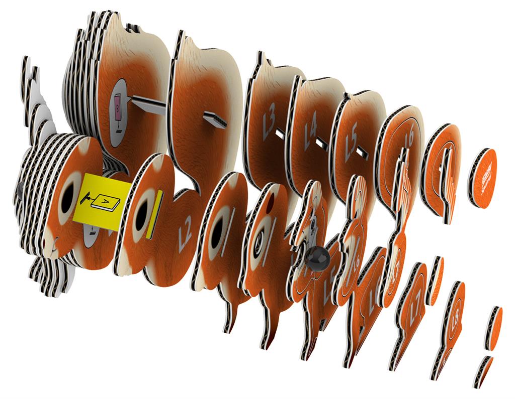 Bouw jouw eigen Eugy 3D-figuur! Dit leuke bouwpakket bestaat uit voorgesneden stukjes gerecycled karton die je eenvoudig met de bijgeleverde niet-giftige lijm op elkaar stapelt. Zo ontstaat er een stevig, kleurrijk en gedetailleerd figuurtje dat je met trots kunt neerzetten of cadeau doen.