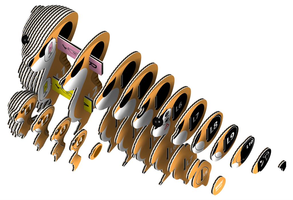 Bouw jouw eigen Eugy 3D-figuur! Dit leuke bouwpakket bestaat uit voorgesneden stukjes gerecycled karton die je eenvoudig met de bijgeleverde niet-giftige lijm op elkaar stapelt. Zo ontstaat er een stevig, kleurrijk en gedetailleerd figuurtje dat je met trots kunt neerzetten of cadeau doen.