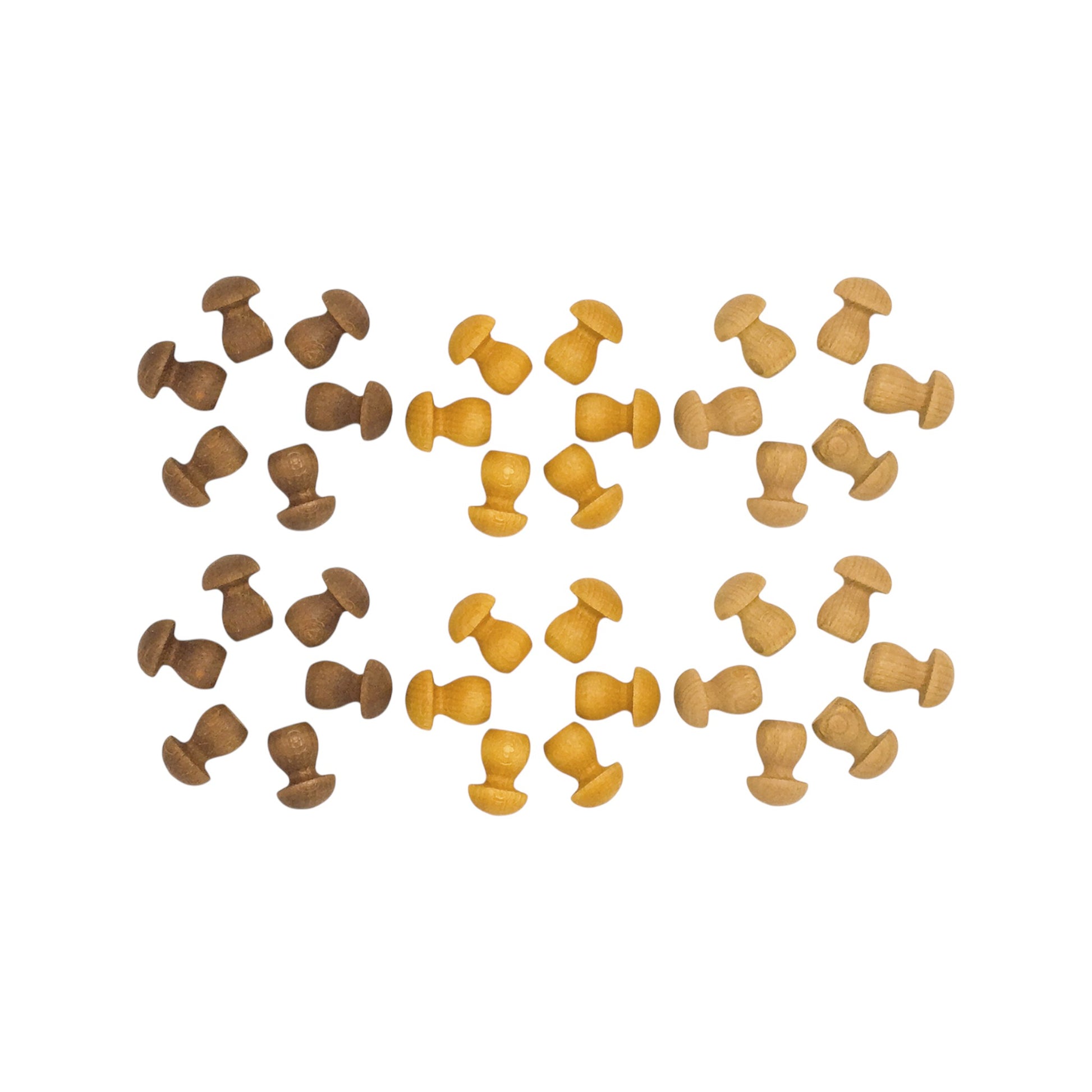 36 paddenstoelvormige stukken voor het maken van mandala's en andere open-ended spelletjes.
