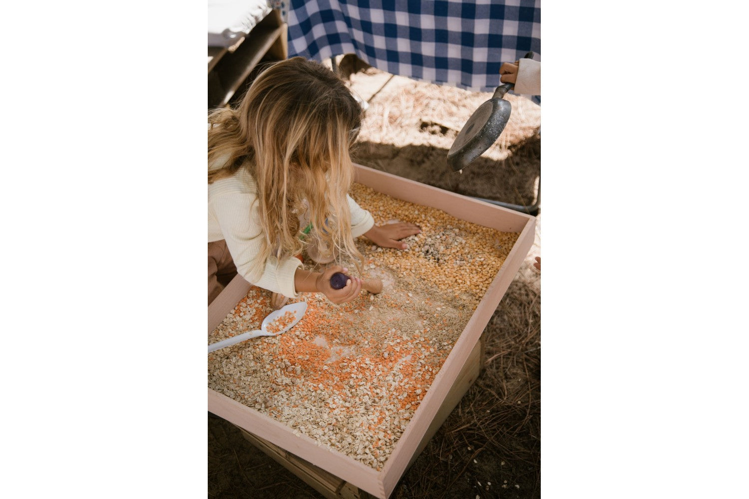 Deze set bevat 6 verschillende gereedschappen, elk in een unieke maat, vorm en kleur. Ze vormen een geweldige aanvulling op allerlei sensorisch spel.