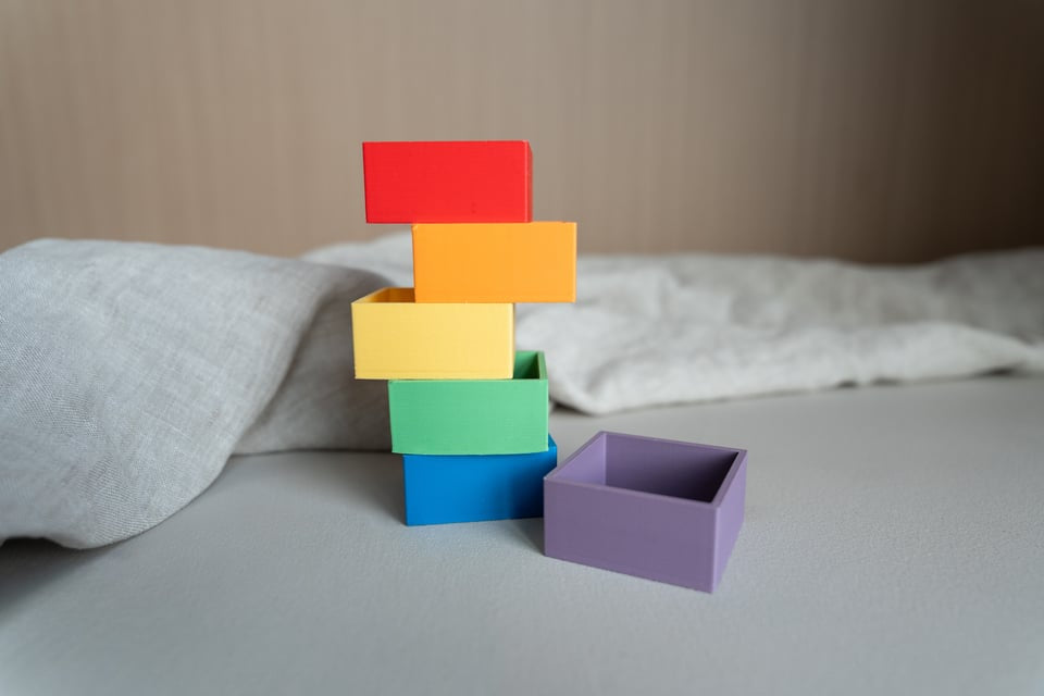 De mandigo vierkante bakjes zijn ontworpen om materialen overzichtelijk te sorteren tijdens sensorisch spel. Elk bakje heeft dezelfde vorm en kan eenvoudig gecombineerd worden met andere kleuren. Ze zijn verkrijgbaar in zowel regenboog- als pasteltinten, zodat je precies het kleurenpalet kunt kiezen dat past bij jouw speelhoek of thema.