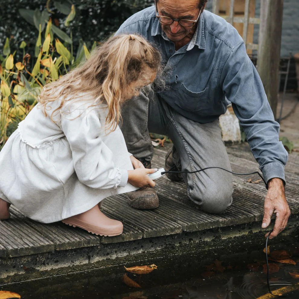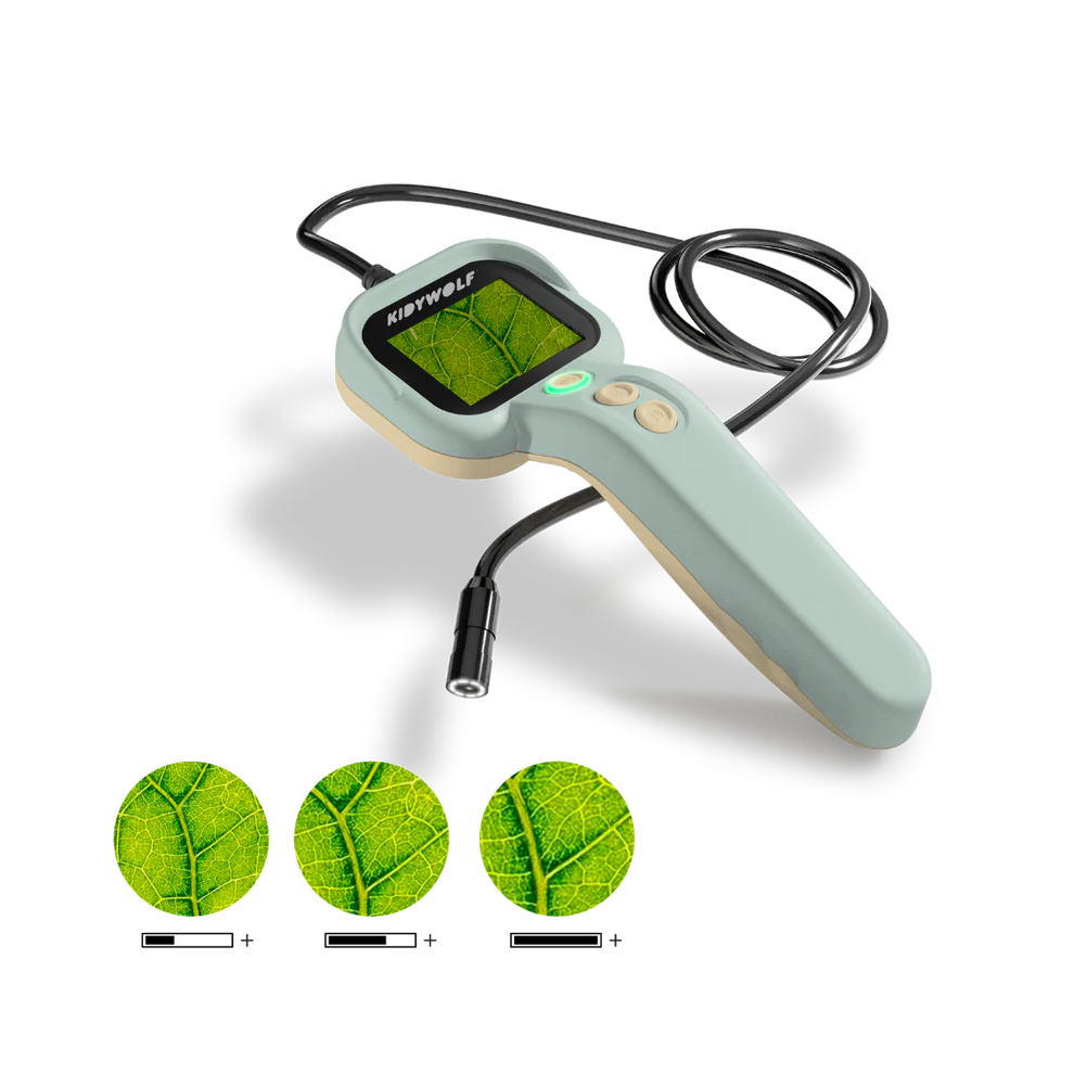 KIDYEXPLORE verandert elke hoek in een avontuurlijk terrein. Met zijn flexibele kabel van een meter, ledlampje, geïntegreerd scherm en camera aan het uiteinde van de kabel kunnen kinderen de natuur van dichtbij observeren, verborgen hoekjes verkennen of moeilijk bereikbare plekken inspecteren. Zonder wifi of app is het een eenvoudig, stimulerend en veilig observatie-instrument dat hun nieuwsgierigheid en ontdekkingsdrang prikkelt.