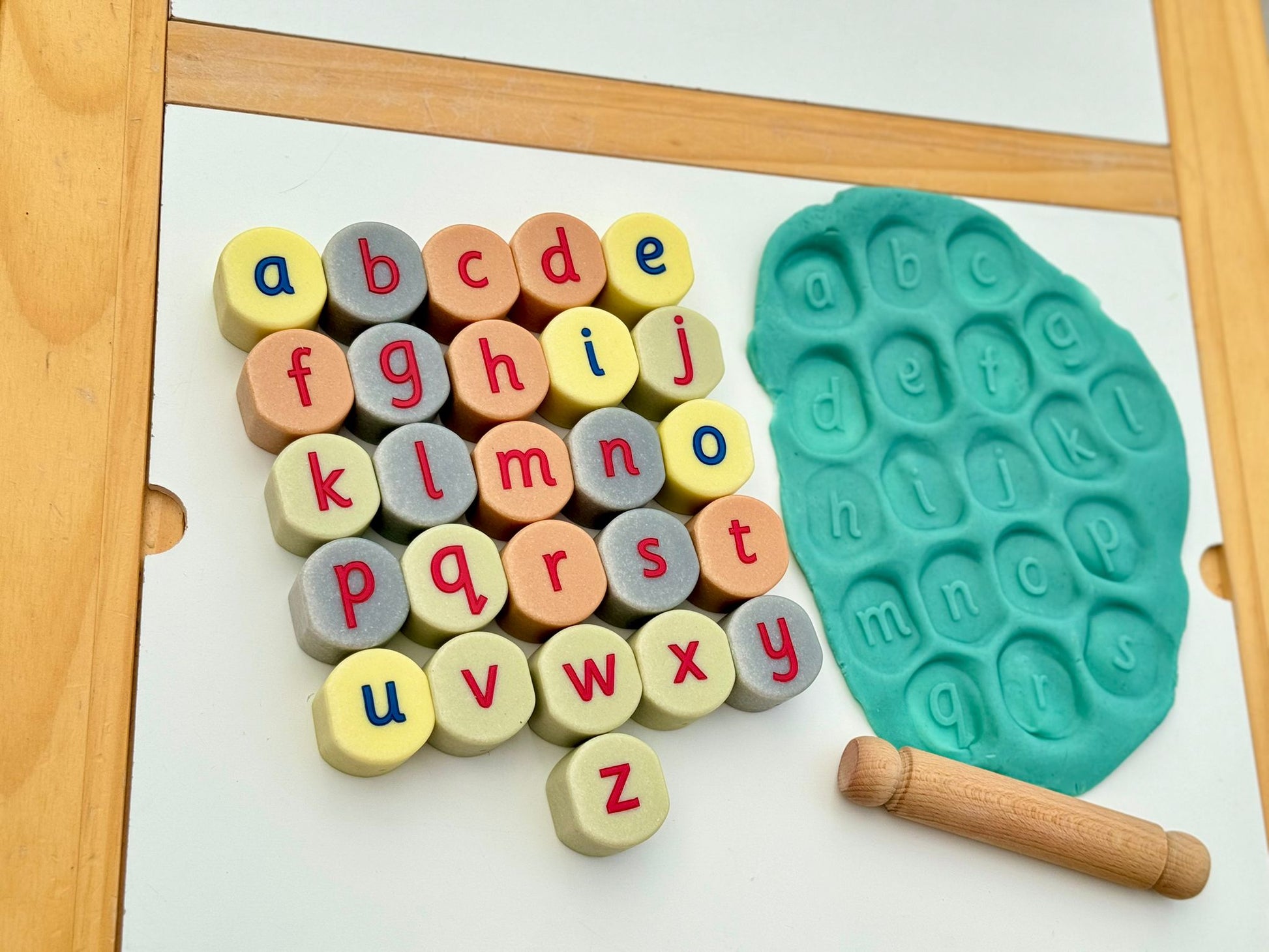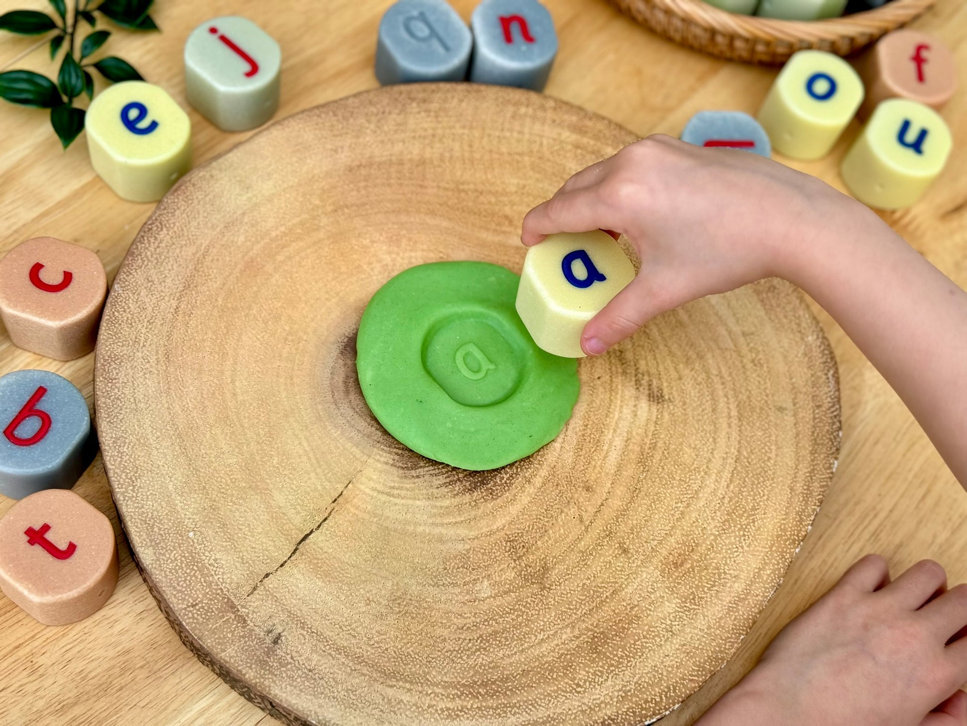 Perfect voor kleine handjes: de positiestippen op deze dikke stenen helpen kinderen om letters correct te herkennen en fungeren als 'geluidsknoppen' bij het uitspreken van elke letter. De rechte zijkanten maken het gemakkelijk om letters correct te verbinden voor eenvoudig woordspelletjes. Deze veelzijdige stempels zijn gemakkelijk afwasbaar en duurzaam voor allerlei soorten letterspel, zowel binnen als buiten.