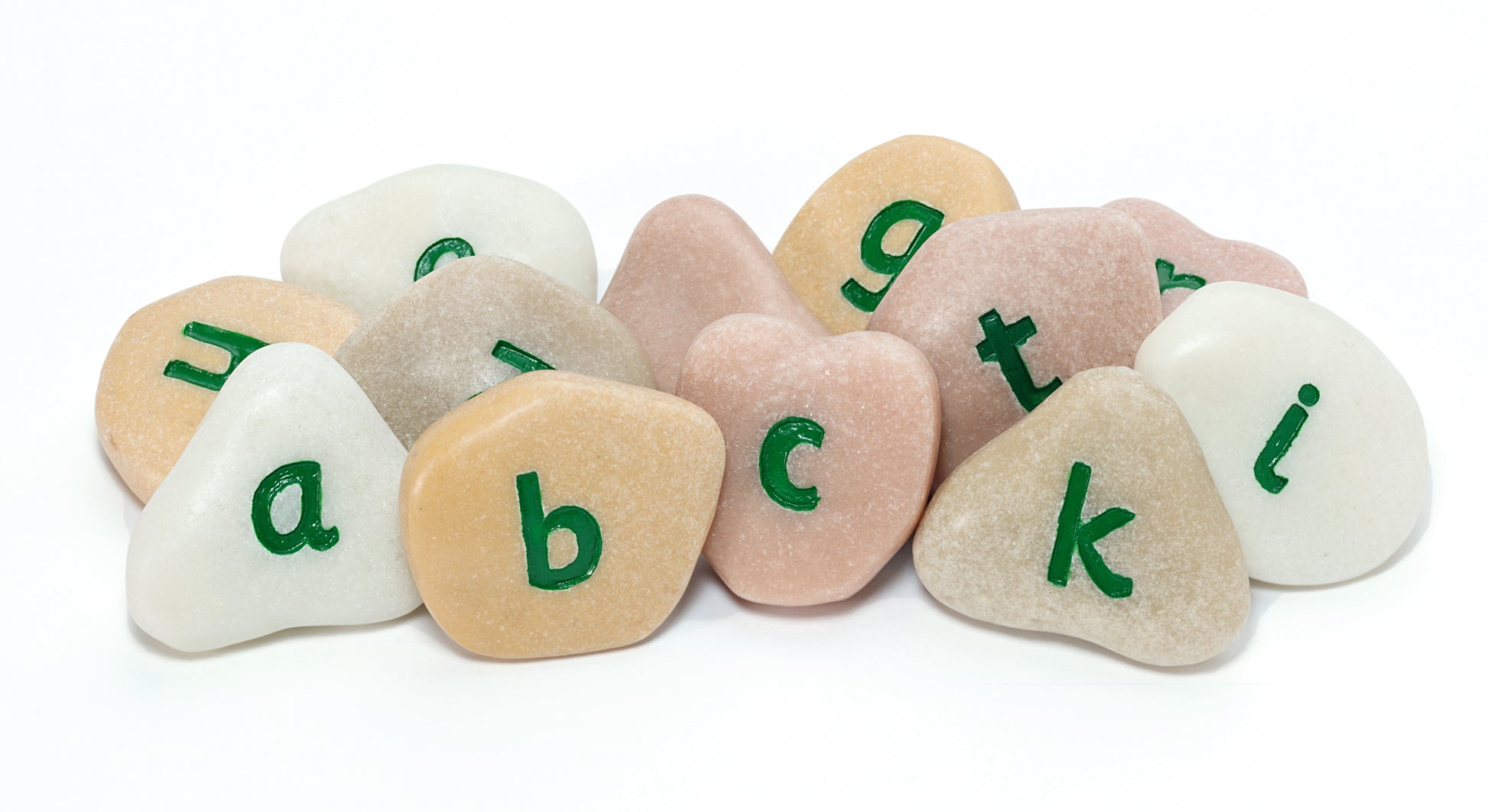 Deze speciaal gegoten letterstenen, gemaakt van een unieke steenmix, spreken het instinct van kinderen aan om te ontdekken, te onderzoeken, te sorteren en te verzamelen. Ze zijn duurzaam en geschikt voor gebruik in de peuterspeelzaal, ook buiten. Elke set bevat 26 stenen (30-45 mm), elk gegraveerd en met de hand beschilderd met een kleine letter, die na verloop van tijd niet vervaagt. Veilig voor kinderen vanaf 2 jaar.